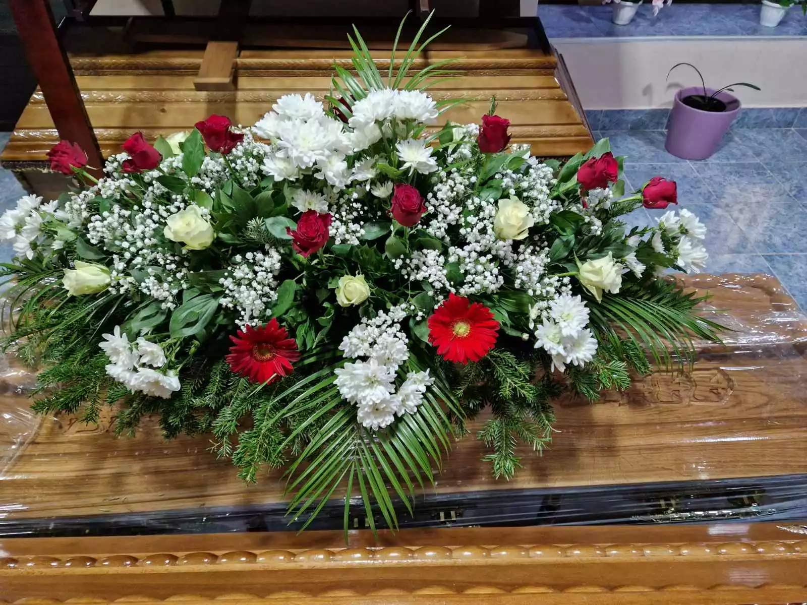 Iz našeg bogatog asortimana nudimo veliki izbor različite pogrebne opreme, tekstilnih garnitura, peškira, maramica, crnine kao i cvetnih aranzmana iz naše cvećare (suze, bukete, korpe, vence) ,sve sto je potrebno za sahranu možete naći kod nas po povoljnim cenama.